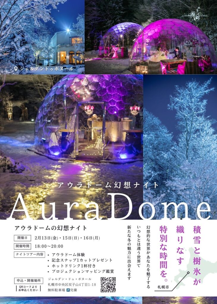 ・真っ白な雪に囲まれた夜のアウラドーム体験