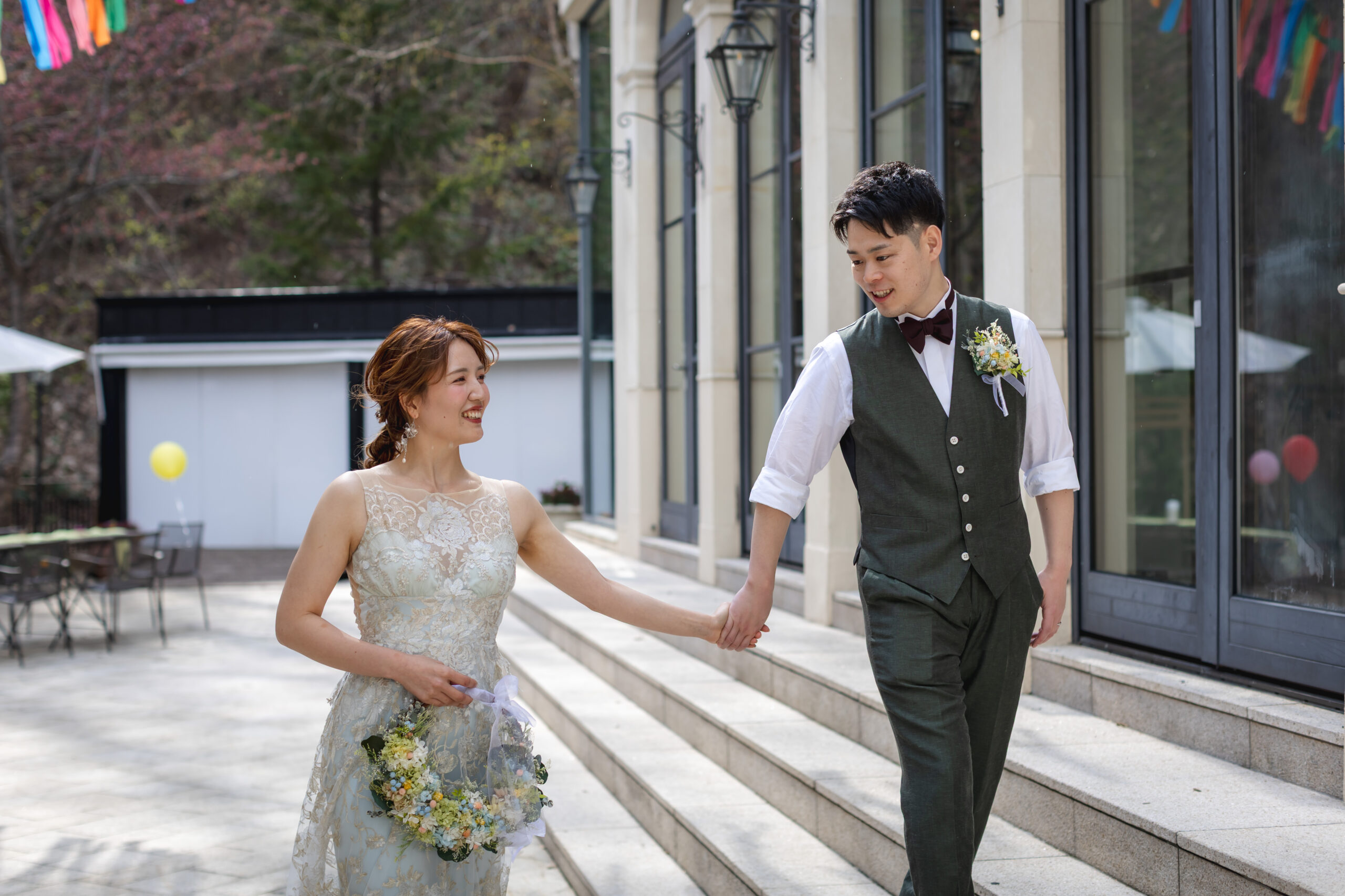 そんなおふたりにも準備期間から目一杯楽しんでいただきたいと思い、常にポジティブを心掛けながらお打合せをさせていただきましたが、そんな必要はない程明るく楽しいおふたりでした!