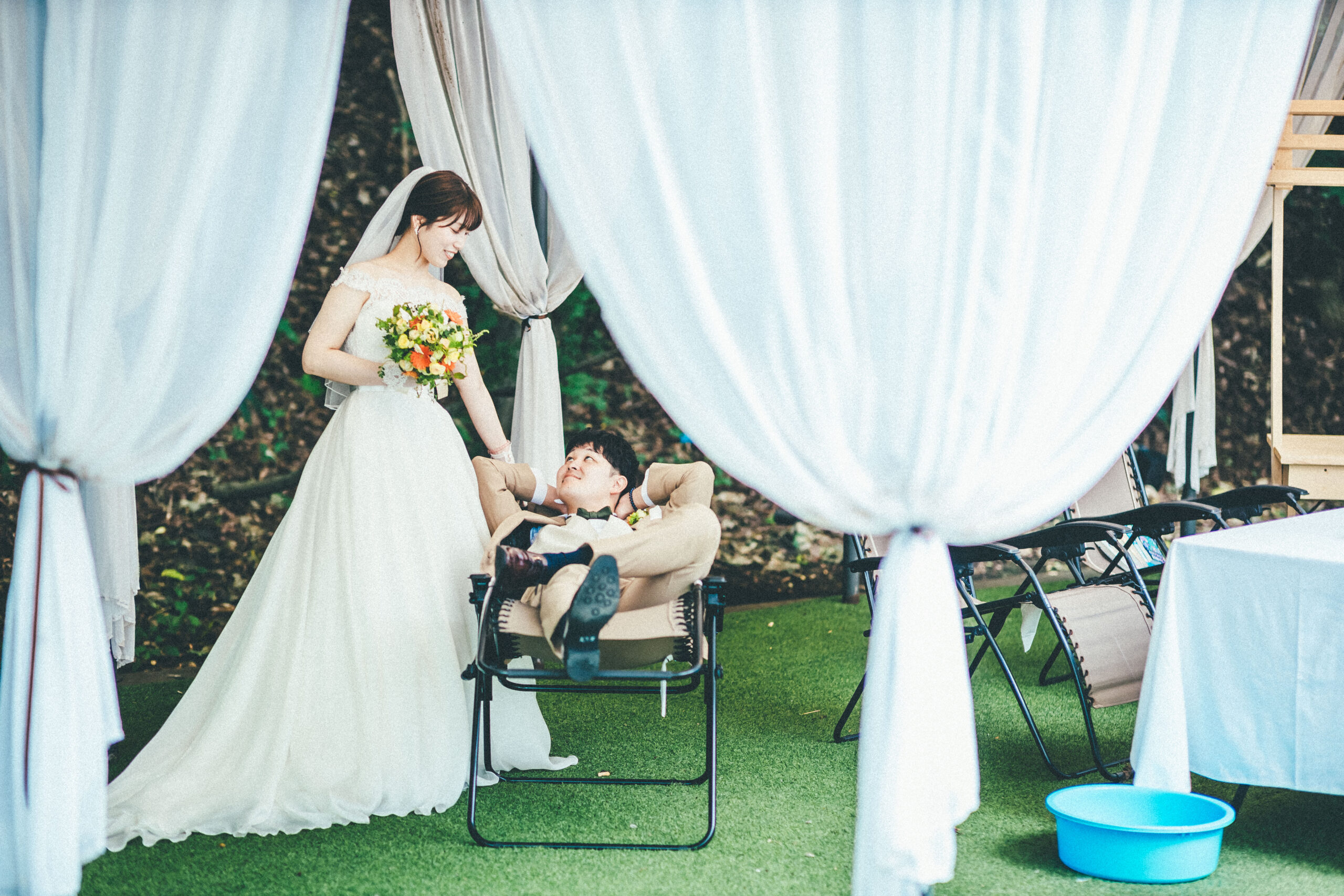 それからわたしたちはキャンプも好きなので、挙式スペースの背景に自分たちがキャンプで使っているテントも建てました。愛用しているテントを背景に挙式ができて嬉しかったです!