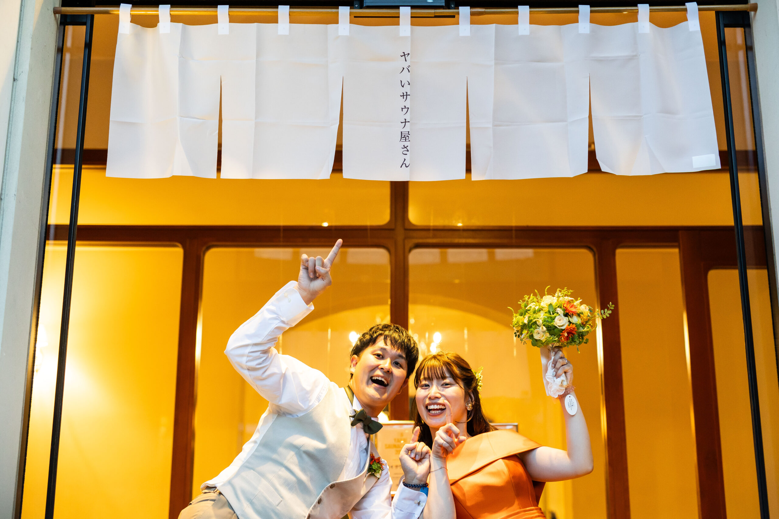 初めてお会いした瞬間からご新郎のボケは止まらず、ご新婦はひたすら笑うという本当に楽しくユーモアが溢れるおふたりは「両サイドで花火を上げてその熱を熱波師たちが仰ぐという再入場にしませんか」という何とも意味の分からない提案にも「それ絶対やりたいです!!!」と大賛成してくださり
